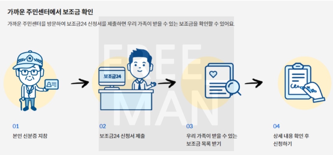 인터넷으로 확인이 어려운 경우 가까운 주민센터에서도 보조금 확인이 가능합니다.